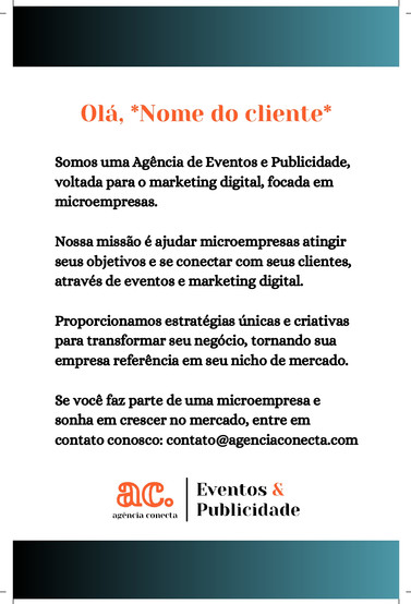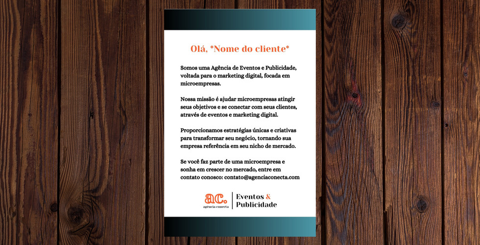 Essa mala direta foi feita para uma Agência de Eventos e Publicidade criada para ajudar microempresas.